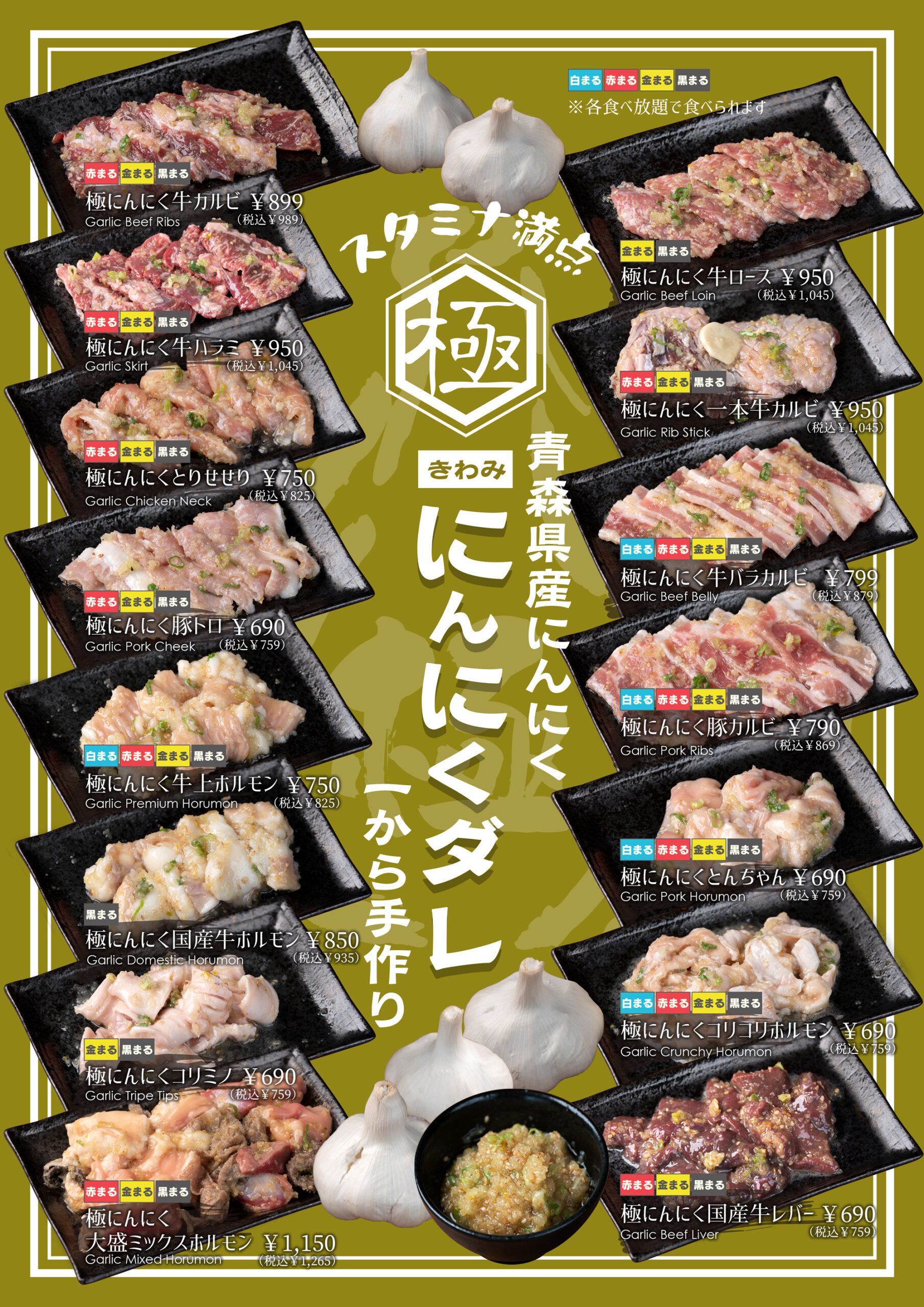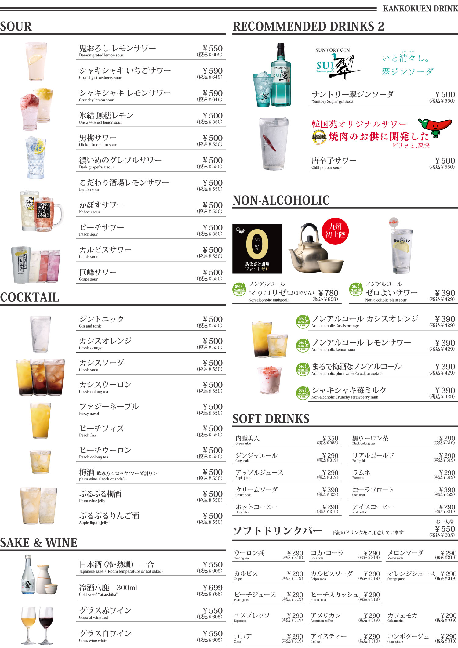グランドメニュー 炭火で味合う焼肉の香ばしさは格別!たくさんのサイドメニュー、韓国料理やデザートなどご家族からカップルまで楽しめます。※店舗により、商品内容・表示価格が異なる場合がございます。 <深夜料金のお知らせ> 22時以降のご来店のお客様より、深夜料金といたしまして、お会計の10%を加算させて頂きます。