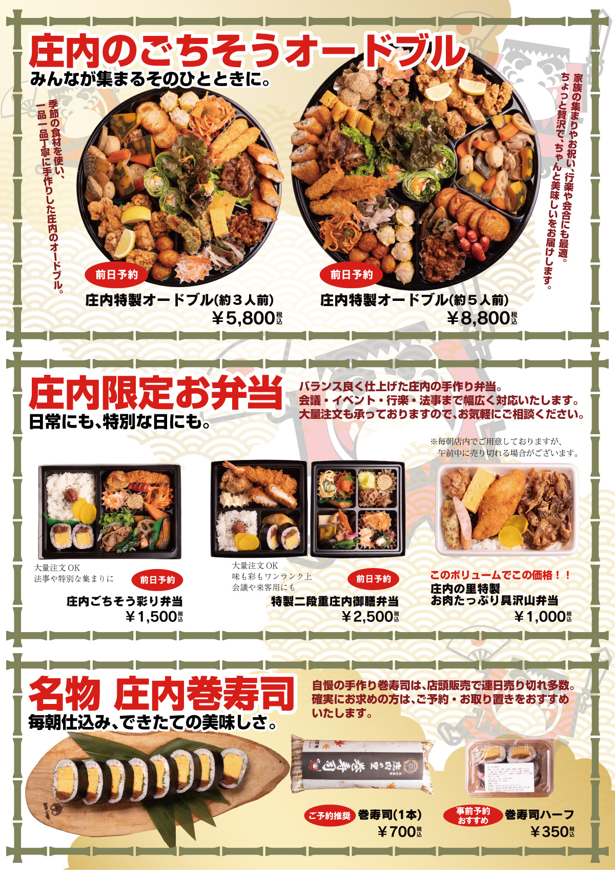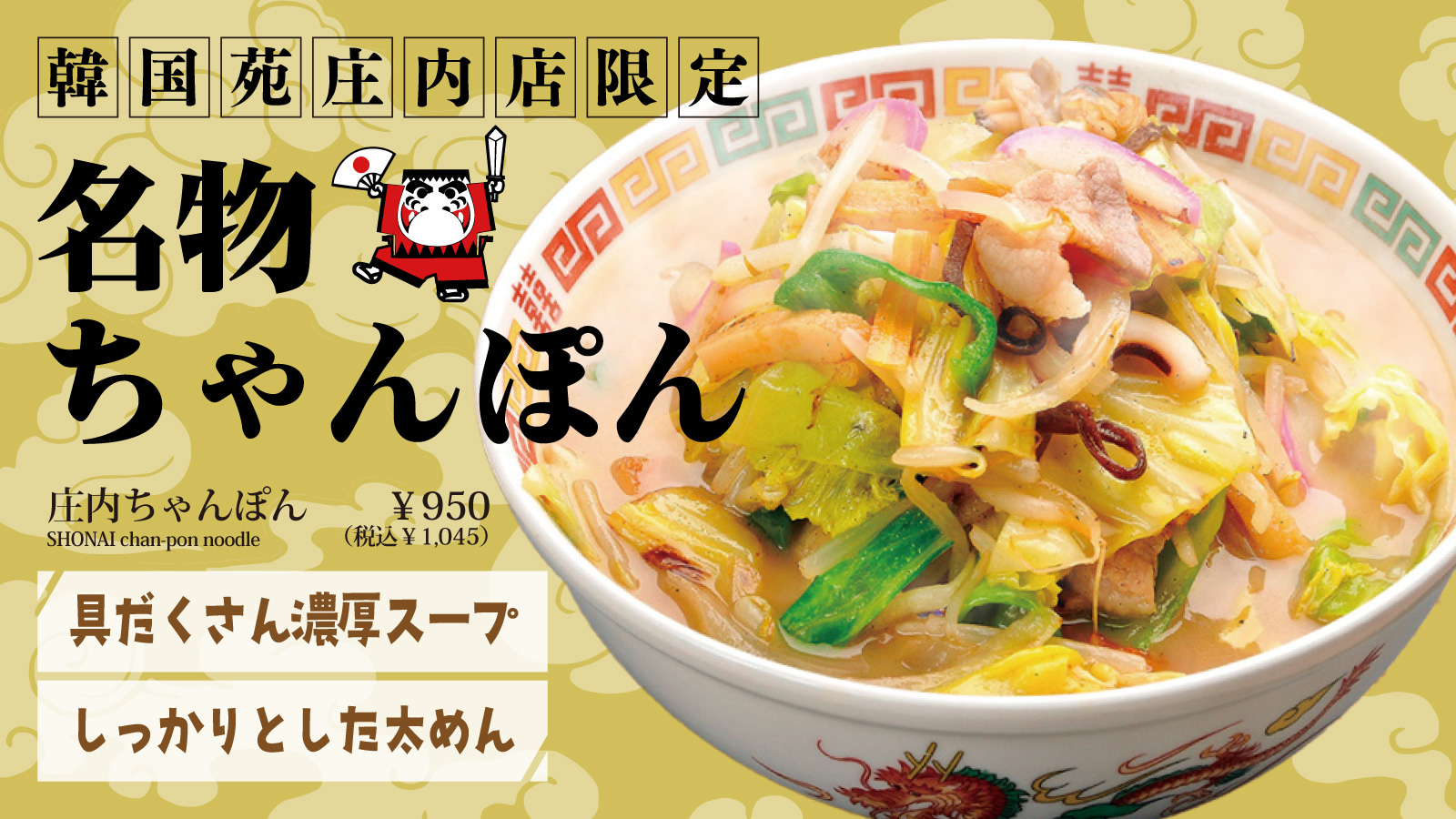 また、庄内店の名物「巻寿司」と「ちゃんぽん」は、絶品の味わいで多くのお客様に大人気